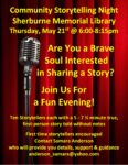Last year Samara Anderson, North Ferrisburgh, VT, began hosting storytelling events in Vermont libraries. The first one in 2025 will be at the Cabot, VT library on Thursday, February 27 from 6-8:15 pm. More storytellers are needed to round out the program, which features a mix of experienced tellers and beginners. The programs follow the Moth Hour format of true personal stories, an announced theme, and structured format for lthe evening. After the February program in Cabot, the Vermont library locations and dates are: